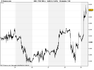 | UK 100 | 5493.06 | -30.86 | -0.56 | -1.42 |