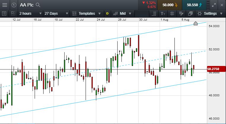Will AA break lower, or will it rise back to 57.3p early June highs again?