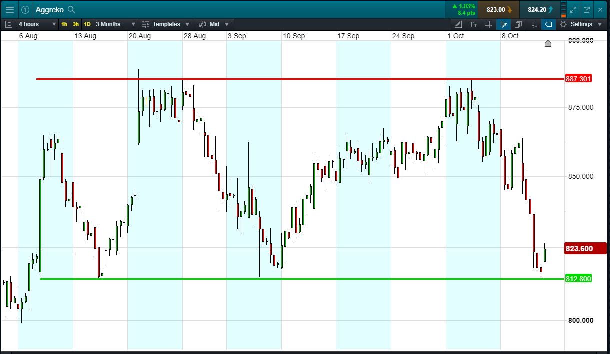 Let’s say you like the Aggreko range, you think it’s heading back towards 887p again. You decide to buy exposure to £10,000 worth of Aggreko using a CFD, at the current price of 823p. To do this, you need £2,000.
