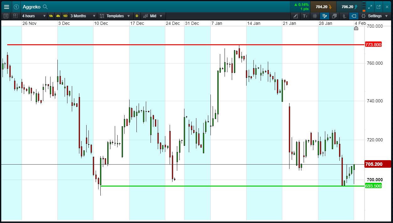- 693p support since mid-Dec; bounced 3 times to trade 705p (at time of writing)