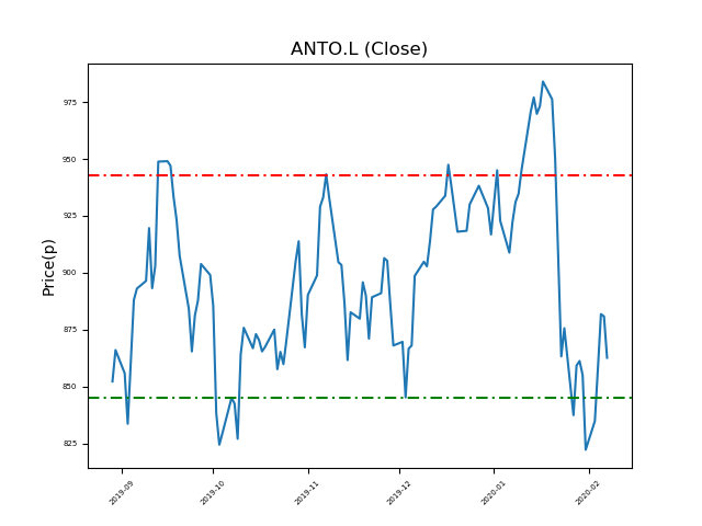 Antofagasta (ANTO.L): currently trading within a range. Will support be broken, or will the range prevail and send the price back to highs of 943p? (+16%)
