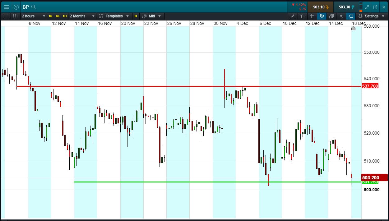 - BP has traded in a range since early November, bouncing off 502p zone 4 times,