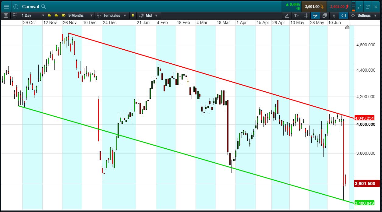 Will Carnival break support or will it rise back to 4000p (+11%)?