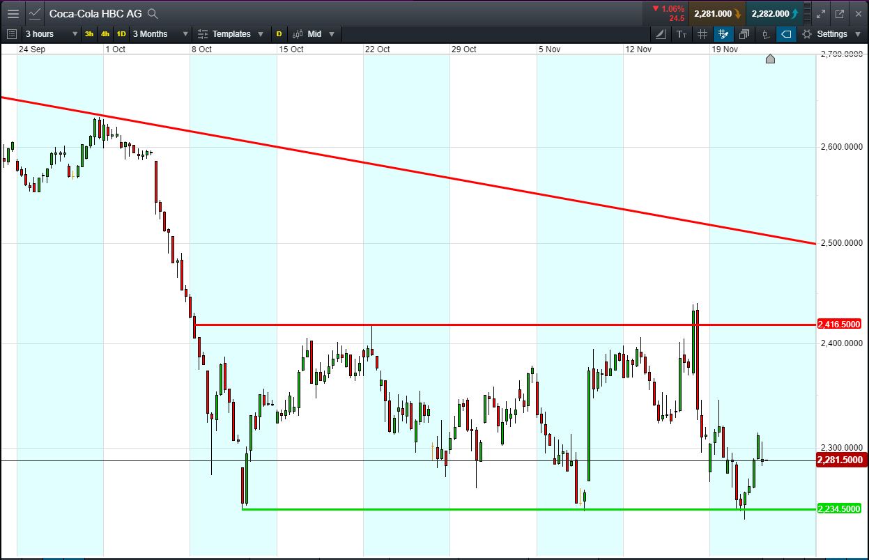 Will Coca-Cola HBC break support, or will it rise again back to 2440p?