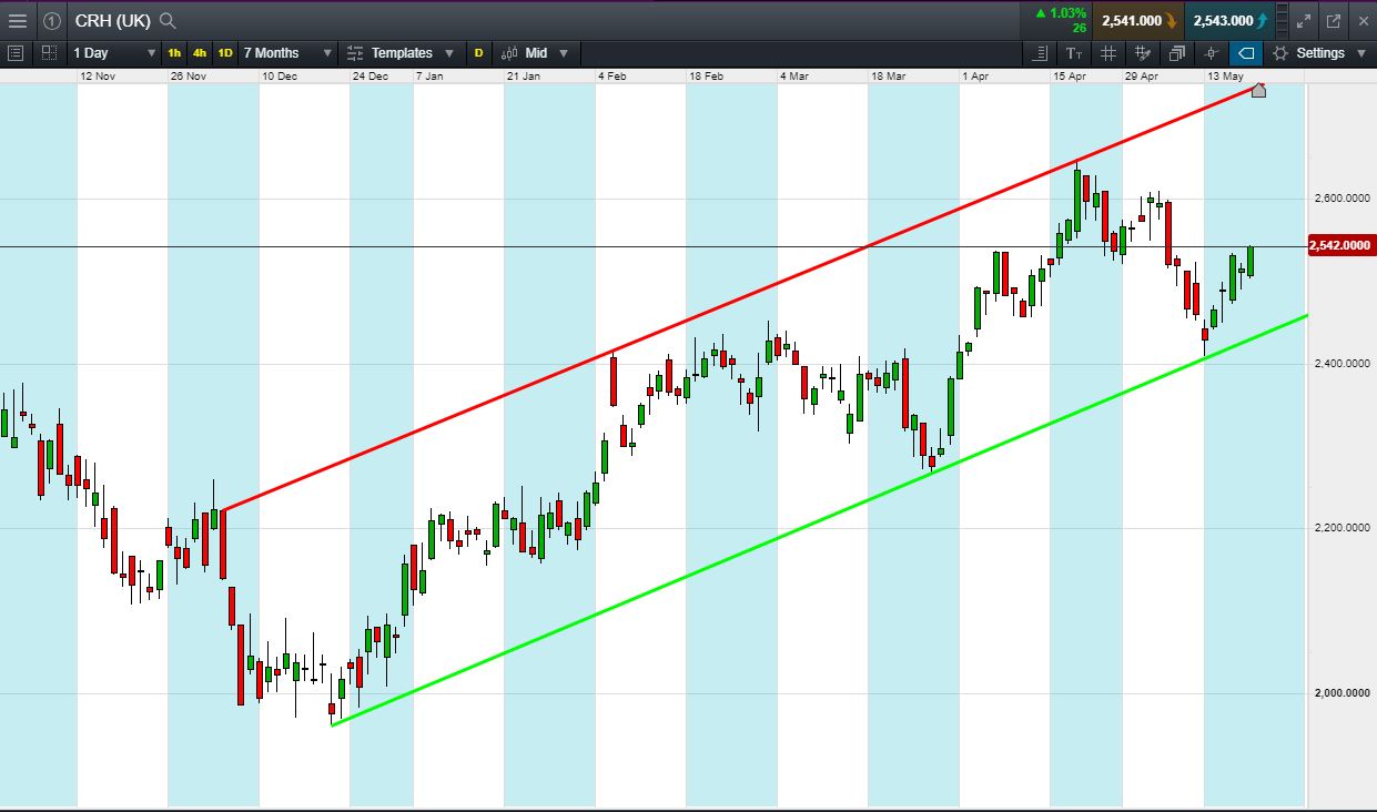 Let’s say you like the CRH range, you think it’s heading to new 2742p highs. You decide to buy exposure to £10,000 worth of CRH using a CFD, at the current price of 2542p. To do this, you need £2,000.