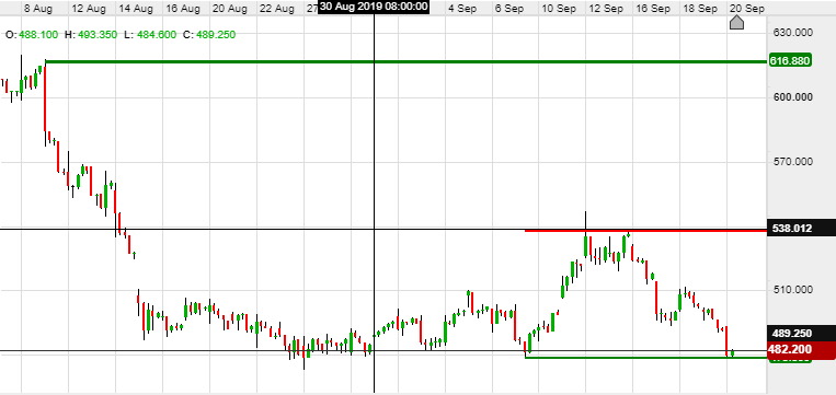 - Bounced 3 times since early Sept; Now 482p (at time of writing).