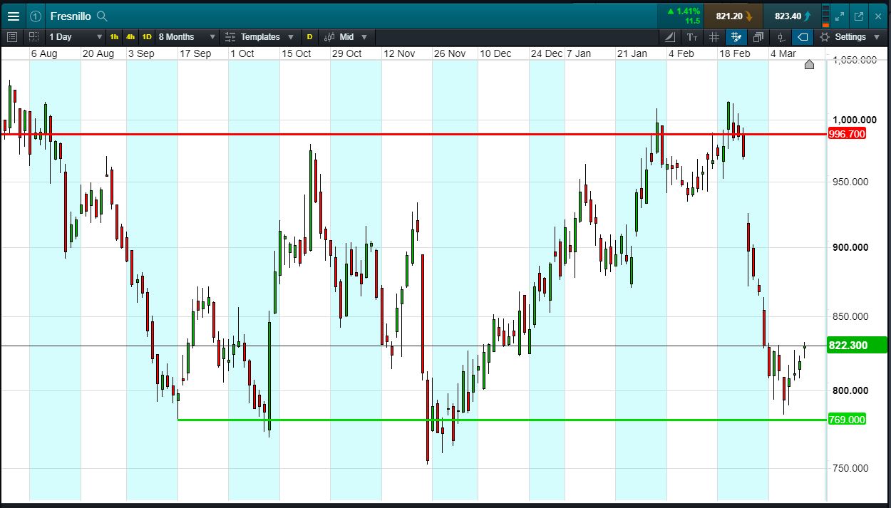 Let’s say you like the range, you think it’s heading back towards 996p again. You decide to buy exposure to £10,000 worth of Fresnillo using a CFD, at the current price of 822p. To do this, you need £2,000.
