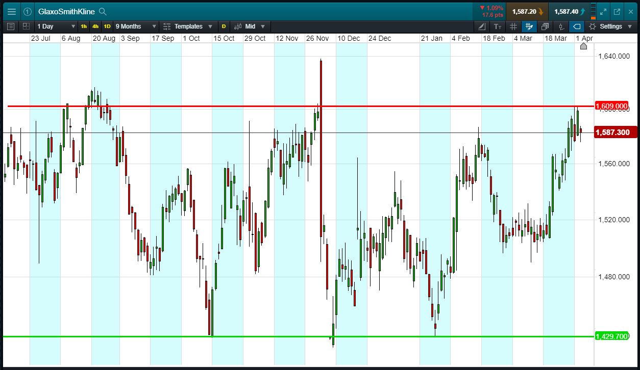 Will GlaxoSmithKline break resistance, or will it fall back to 1429p?