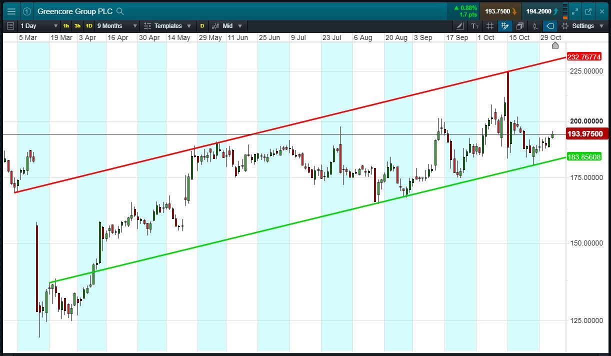 Let’s say you like the Greencore range, you think it’s heading back towards 225p again. You decide to buy exposure to £10,000 worth of Greencore using a CFD, at the current price of 194p. To do this, you need £2,000.
