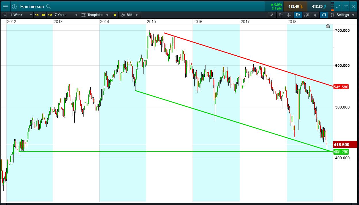 Let’s say you like the Hammerson range, you think it’s heading back towards 548p again. You decide to buy exposure to £10,000 worth of Hammerson using a CFD, at the current price of 418p. To do this, you need £2,000.