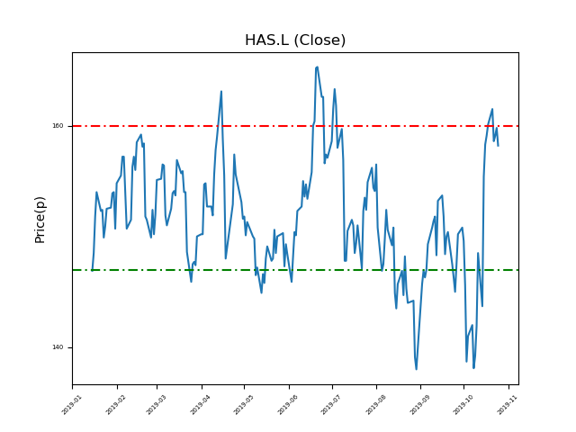 Hays (HAS.L): will resistance fail, or will the price continue within the current range and return to 147p?(-7%)