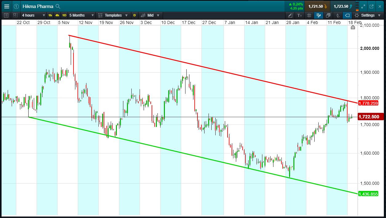 Let’s say you like the range, you think it’s heading back towards 1436p again. You decide to sell exposure to £10,000 worth of Hikma using a CFD, at the current price of 1722p. To do this, you need £2,000.