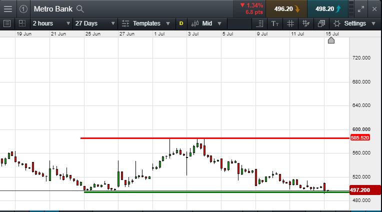 Will Metro Bank bounce off support, or will it go back to 585p?