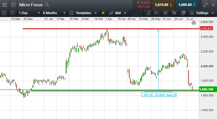 Will Microfocus break support, or will it rise back to 2175p July high?