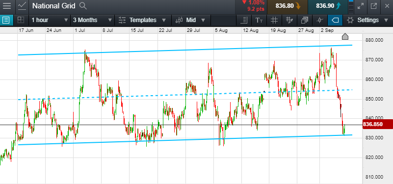 Will National Grid break out below the range support at 830p, or will it head back to the top of the range at 869p? (+4.7%)