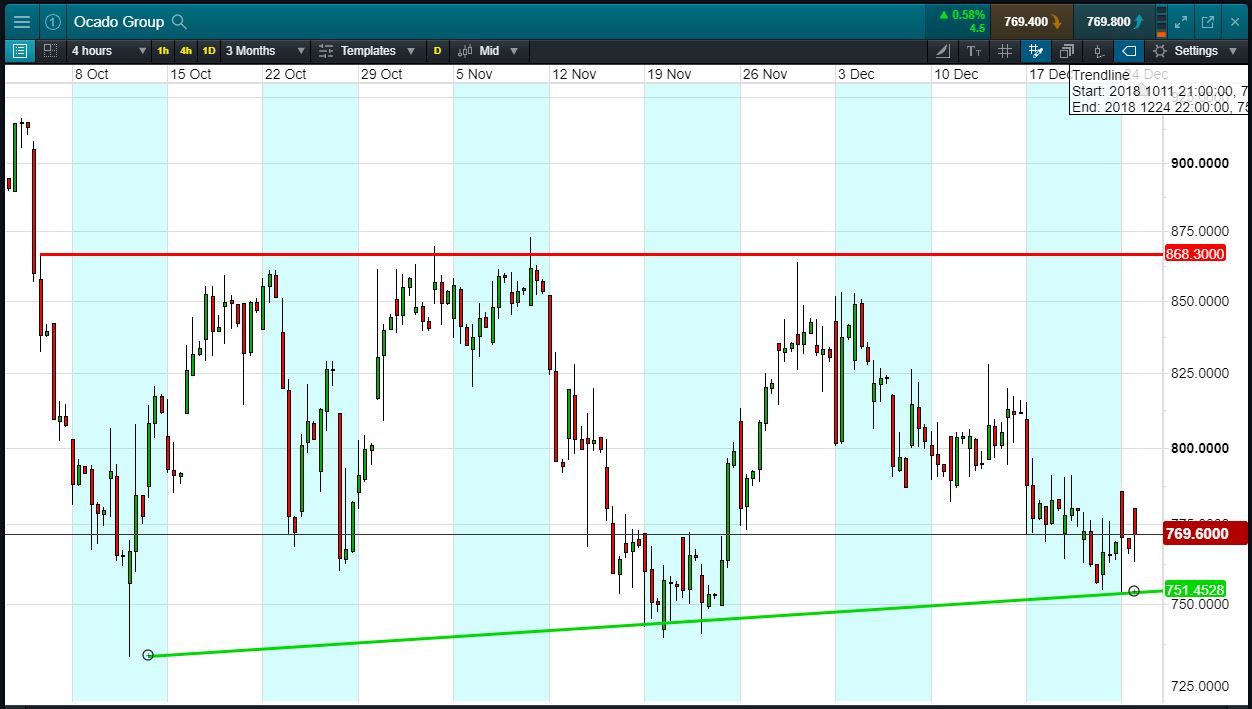 Will Ocado break lower, or will it rise back to 868p highs again?