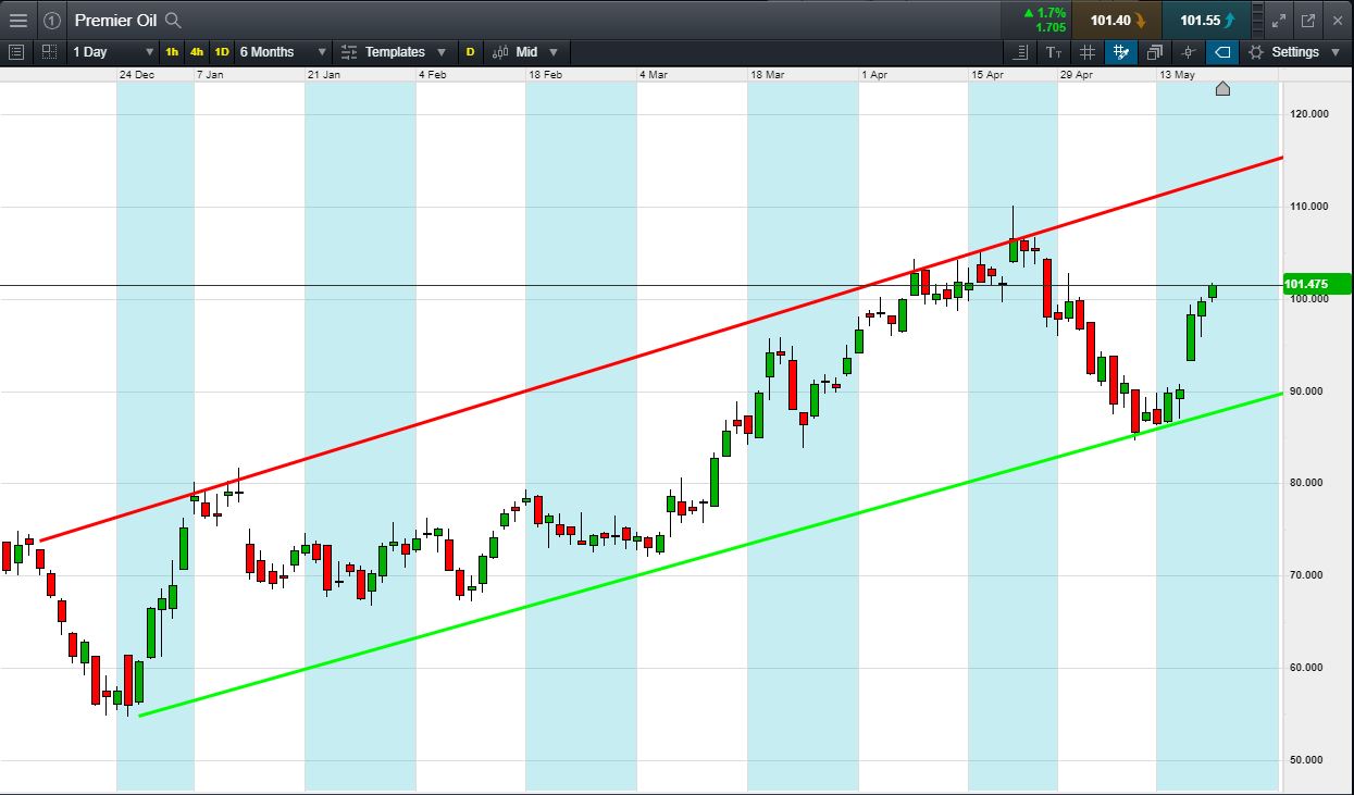 Will Premier Oil break support, or will it rise back to April 110p highs?