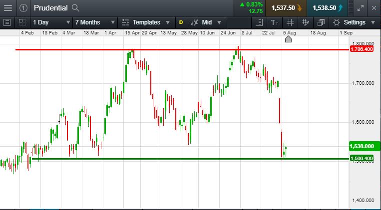 Will Prudential break lower, or will it rise back again to recent resistance of 1786p?