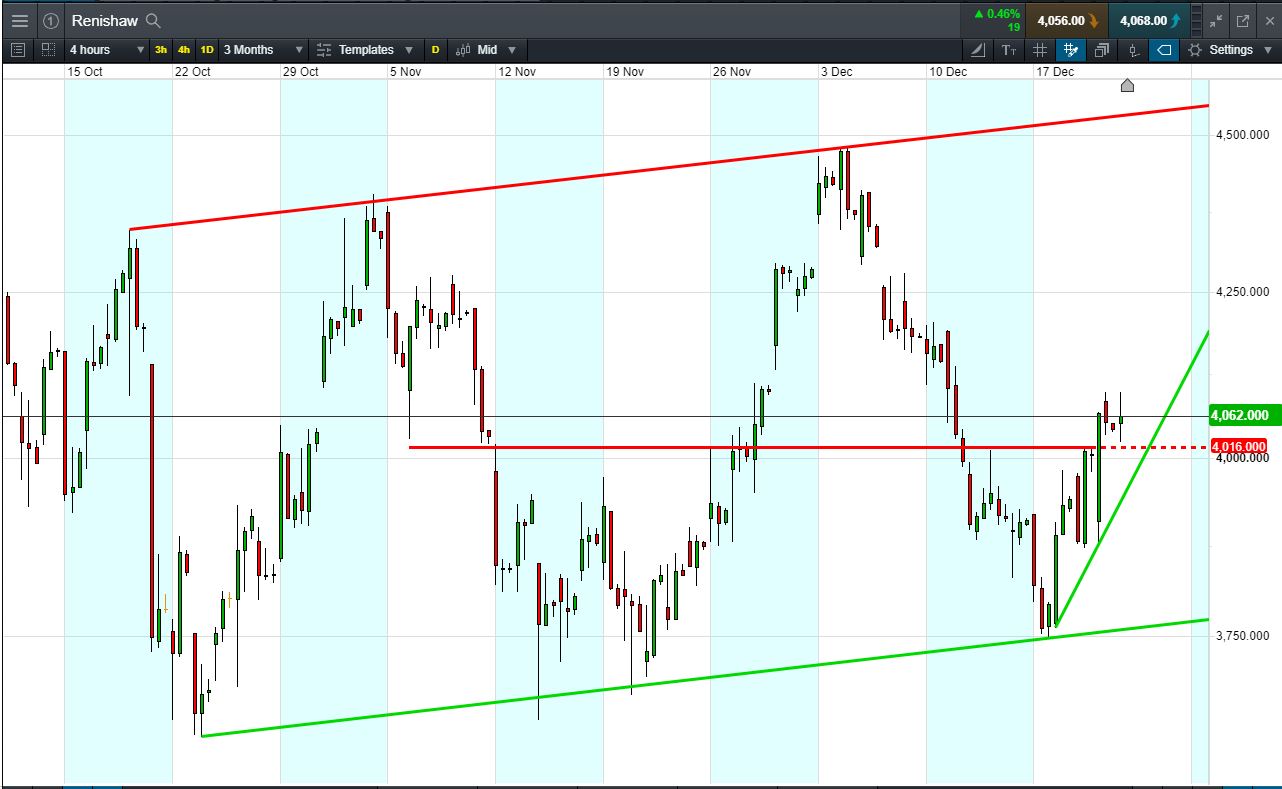 - Renishaw shares are trading in a rising range since late October.