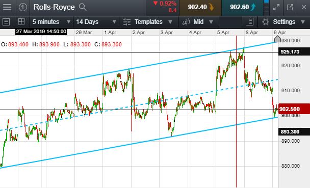Let’s say you like the range, you think it’s heading back towards 925p again. You decide to buy exposure to £10,000 worth of Rolls Royce using a CFD, at the current price of 903p. To do this, you need £2,000.