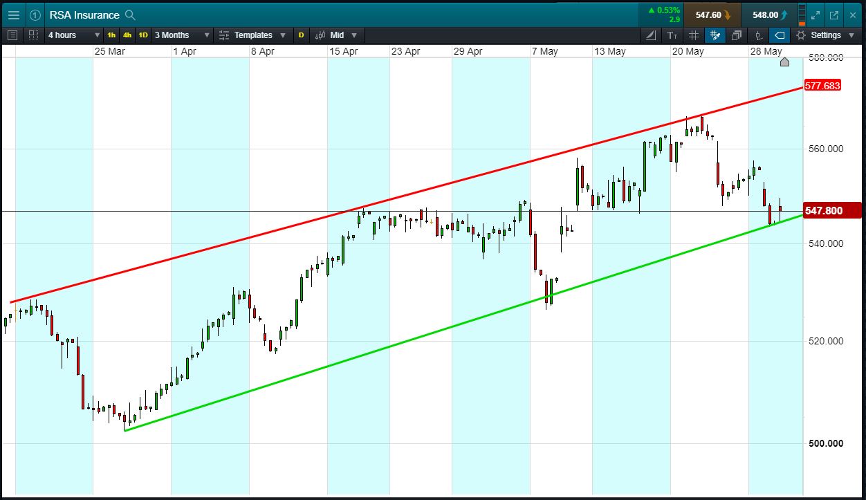 Will RSA Insurance break support, or will it rise back to 576p? (+5.3%)