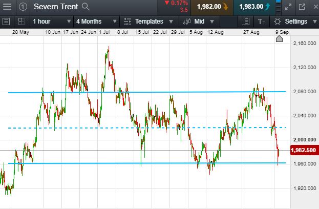 Will Severn Trent PLC (SVT.L) break the range support at 1975, or bounce again to the top of the range at 2070p? (+4.8%)