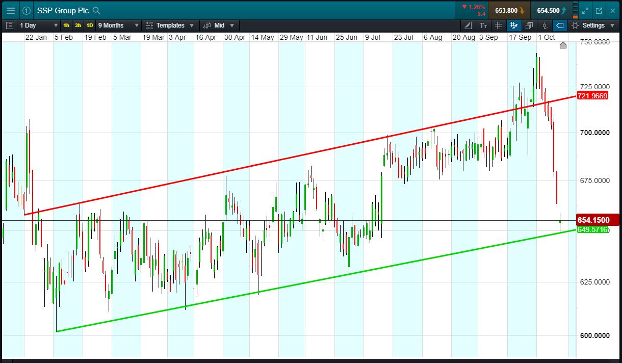 Let’s say you like the SSP range, you think it’s heading back towards 720p again. You decide to buy exposure to £10,000 worth of SSP using a CFD, at the current price of 654p. To do this, you need £2,000.