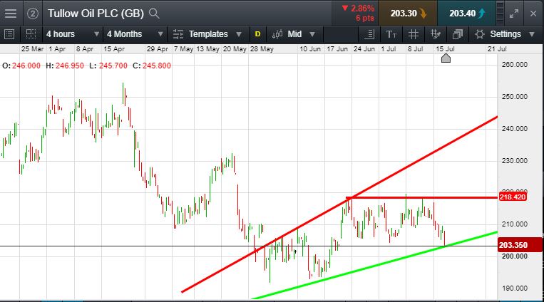 Will Tullow Oil break lower, or will it rise back again to 218p?