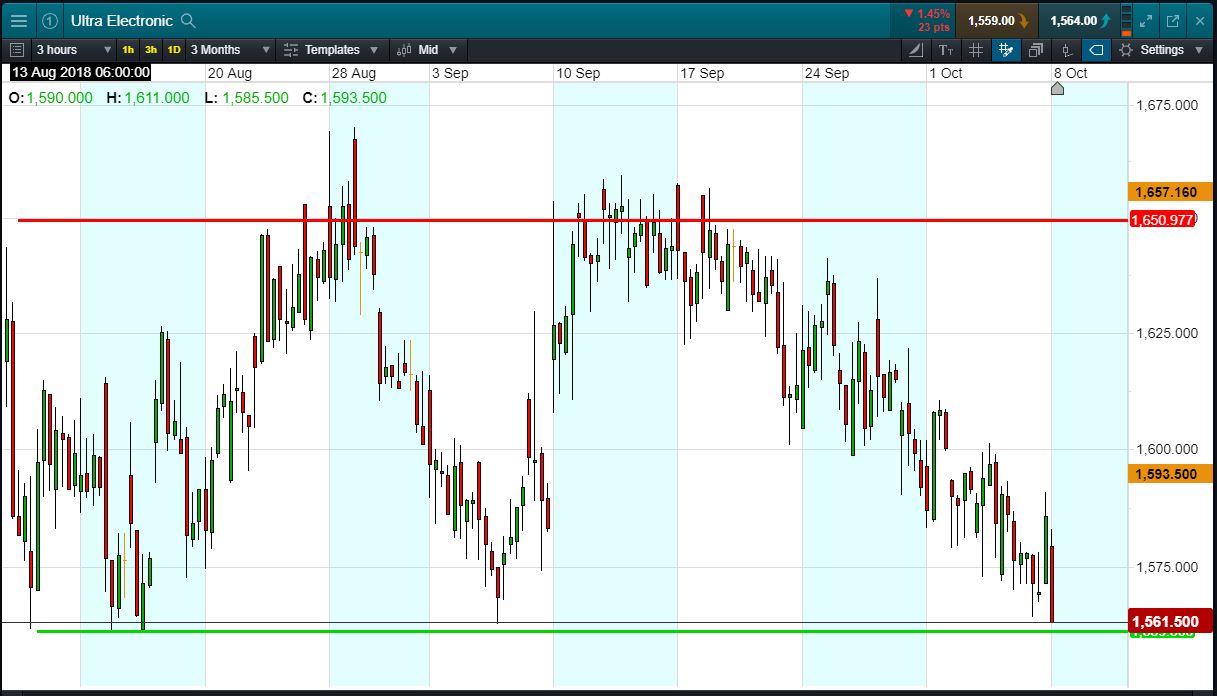Will Ultra Electronics break support, or will it rise again back to 1650p?