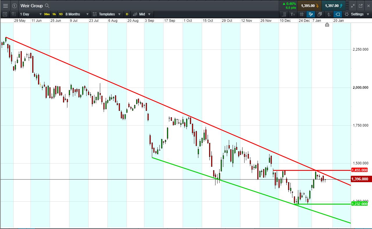 Will Weir Group break higher, or will it fall to 1232p lows again?