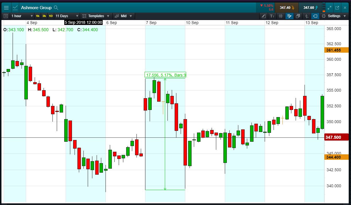 - The chart shows the price movement last time Ashmore reported: FY18 results, 7 Sept.