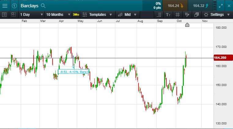 - The shares fell as much as 4.1% for a daily range of 6.3p.