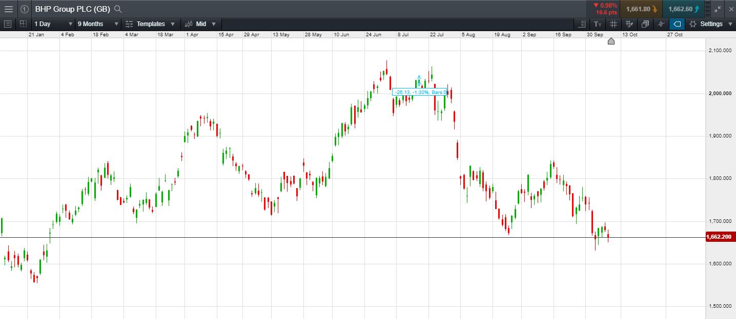 BHP issues a Trading update, Wednesday 16th October