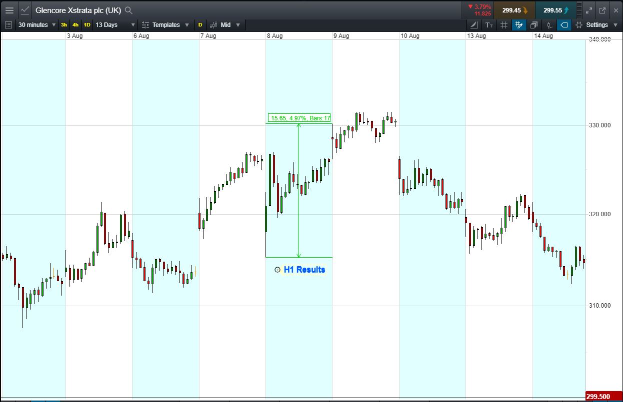 • The chart shows the price movement last time Glencore reported: H1 Results, 8 Aug.