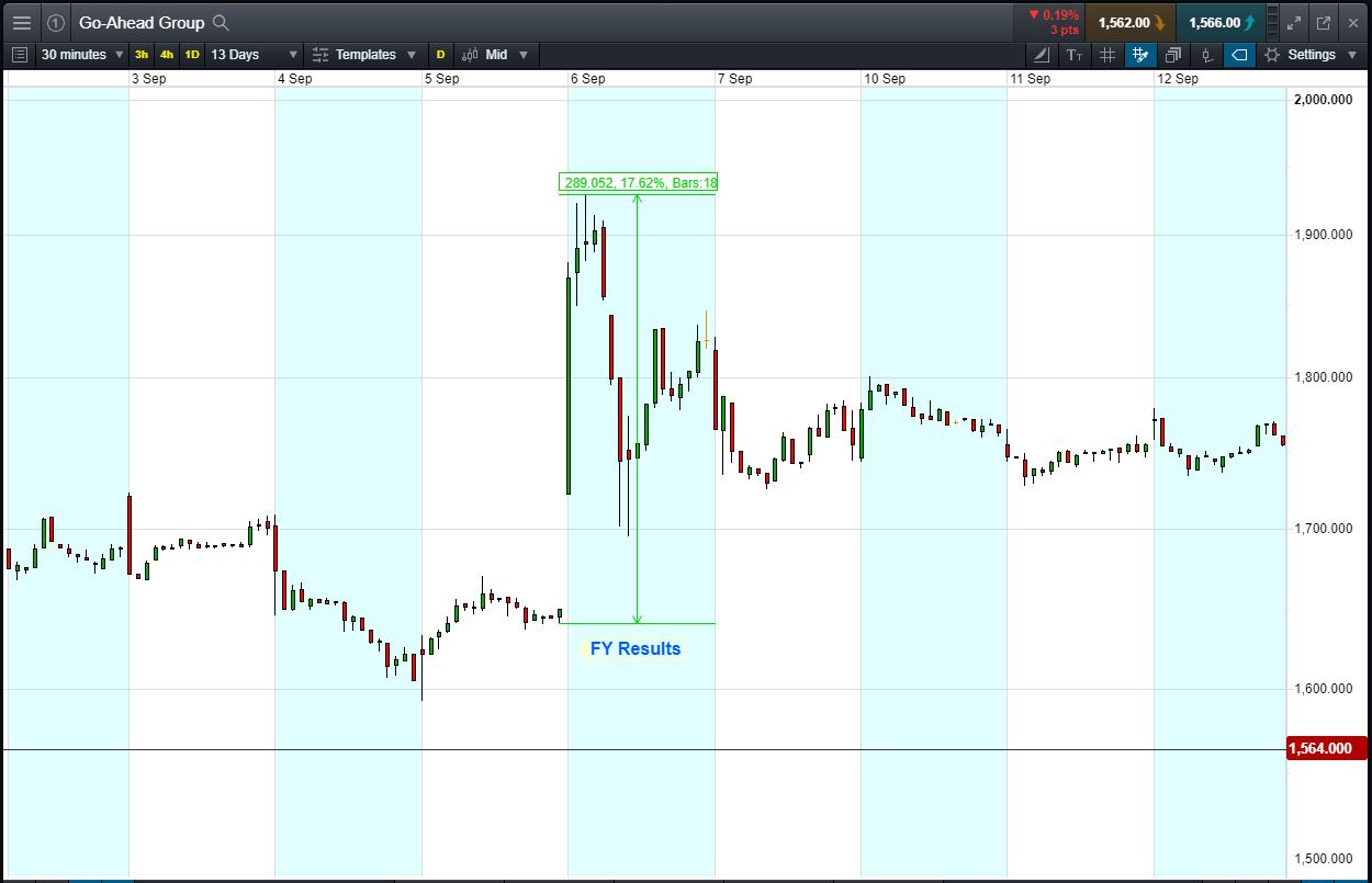 - The chart shows the price movement last time Go Ahead reported (FY Results, 6 Sept).
