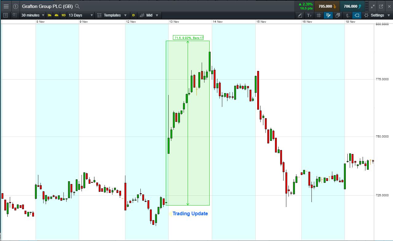 - The chart shows the price movement last time Grafton Group reported: Trading Update, 13 Nov.