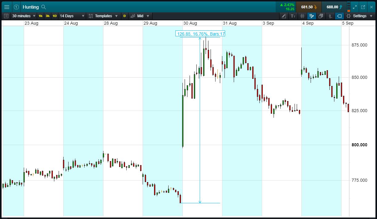 - The chart shows the price movement last time Hunting reported: H1 Results, 30 Aug.