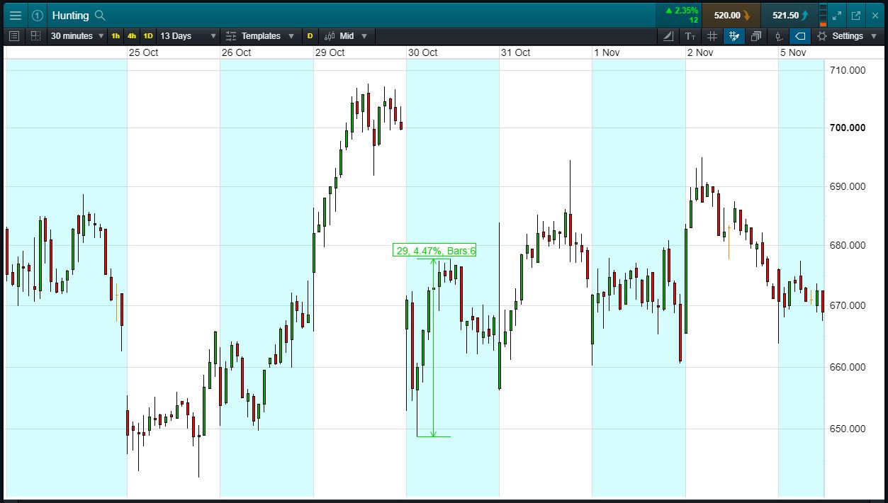 - The chart above shows the price movements last time Hunting reported (Q3 Trading Update, 30 Oct).