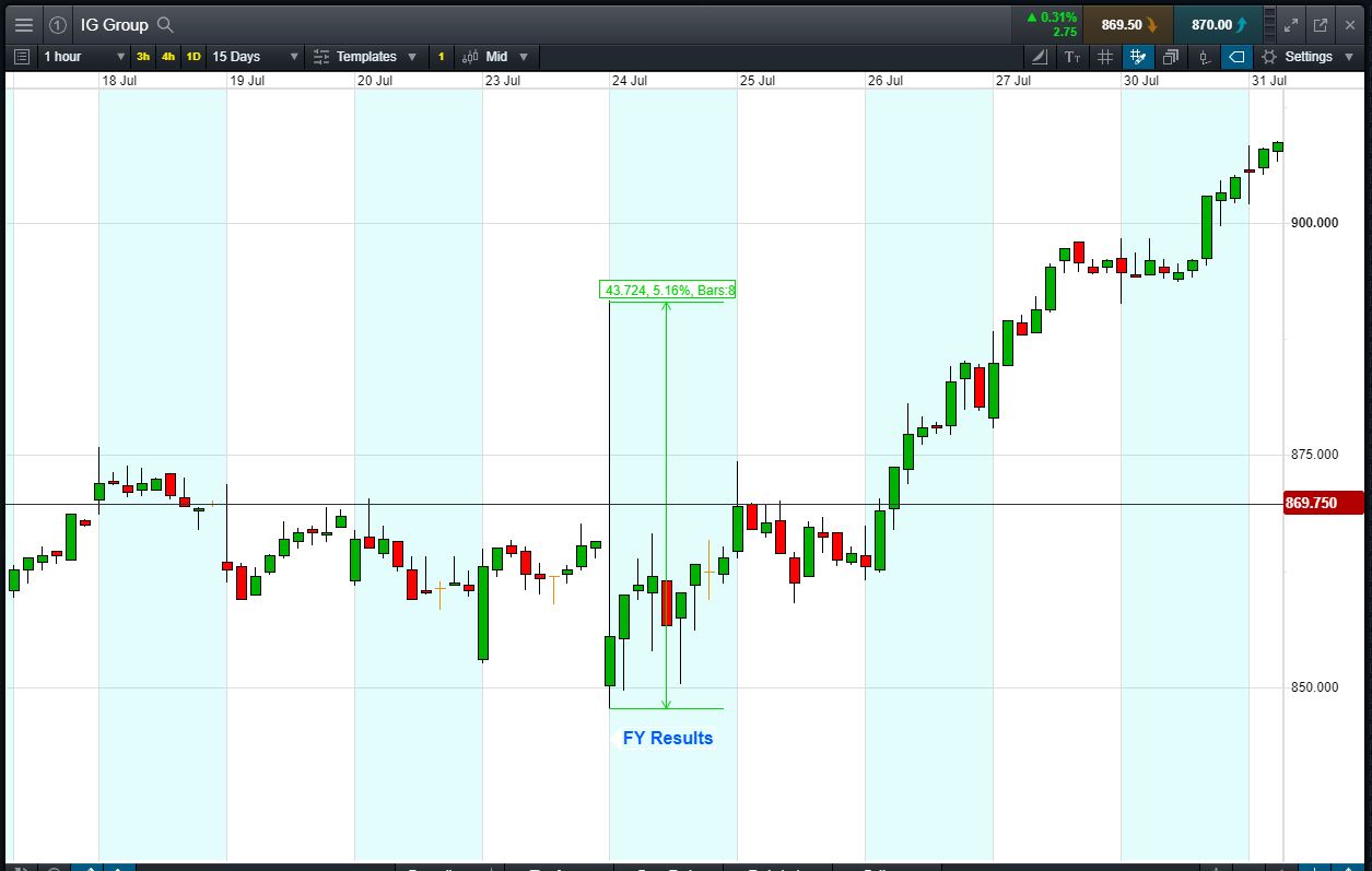 - The last time IG Group issued results in late July, the share price moved as high as 893p, up 40p.
