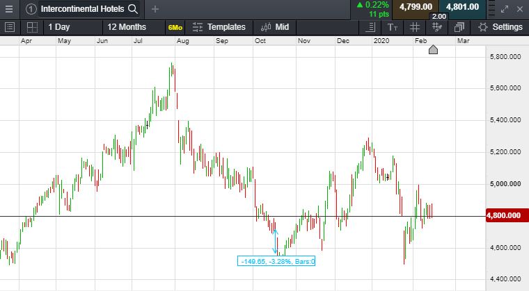 - The chart shows the price movement last time InterContinental Hotels reported: Third Quarter Trading Update October 18th 2019.