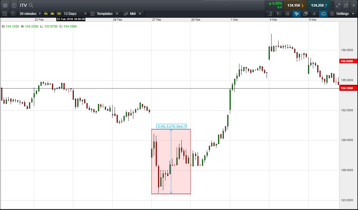 Conversely, let’s assume you open the position, and place a stop-loss 3% below the current price. ITV results miss, it falls 3% and hits your stop-loss. Your loss would be £300.
