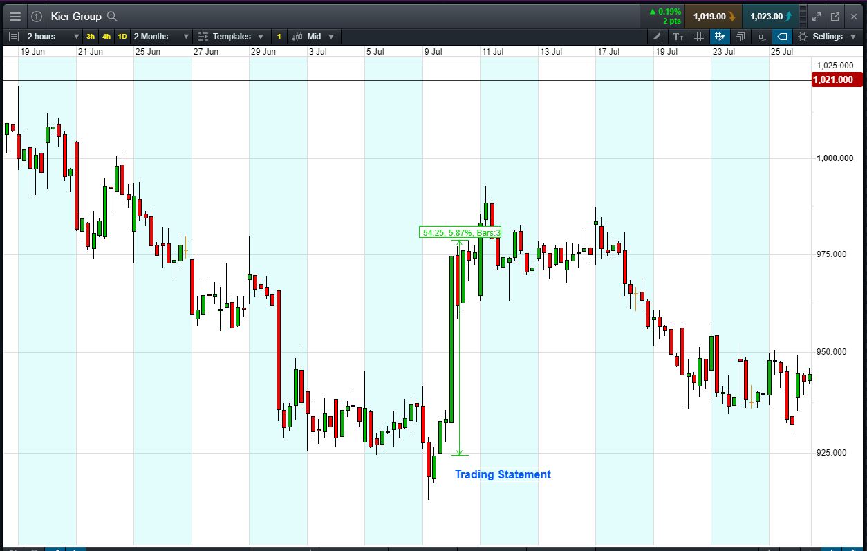 - The last time Kier Group issued results in mid-July, the share price moved 40p higher.