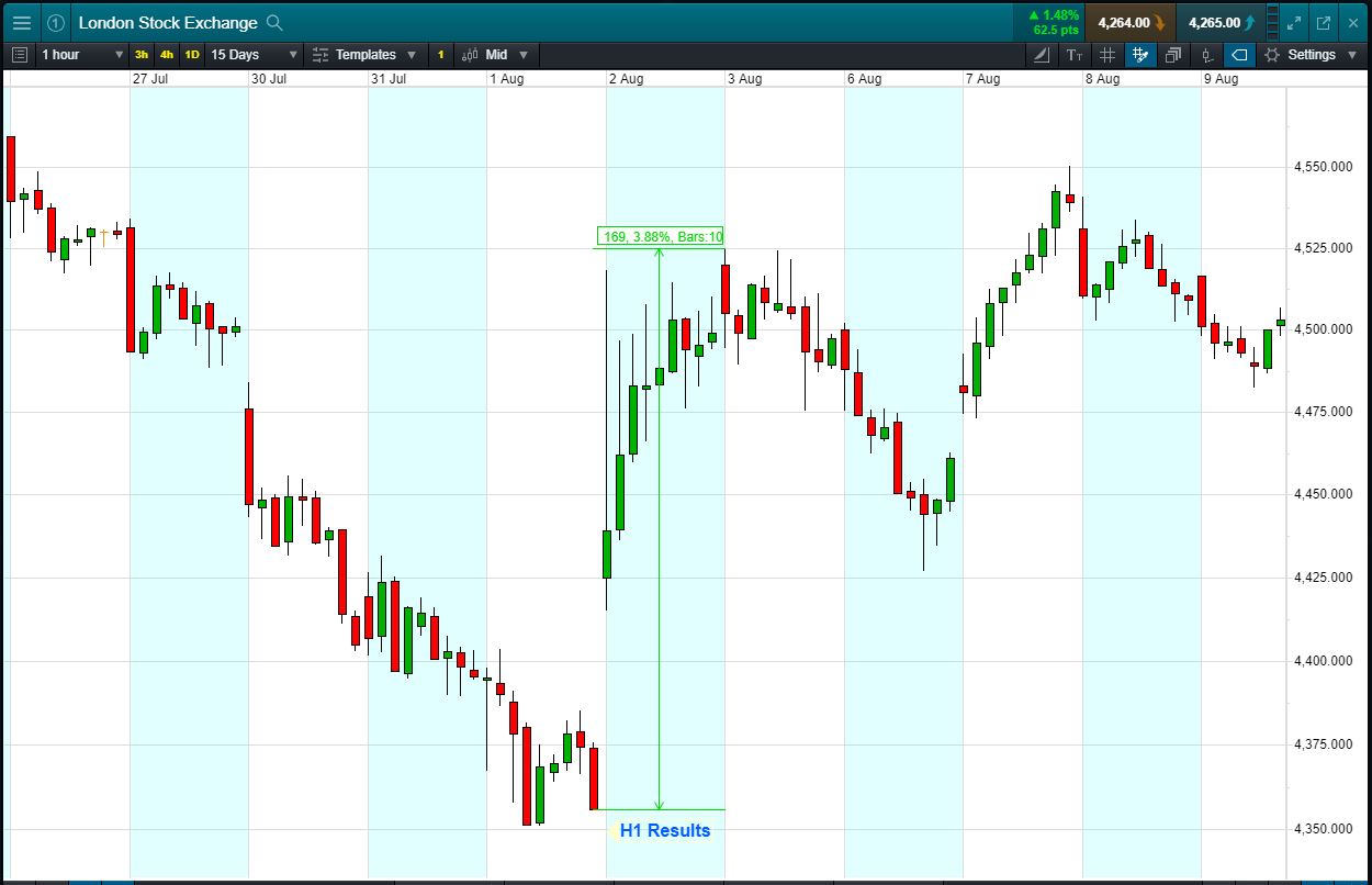 - The chart shows the price movement last time London Stock Exchange reported: half-year results, 2 Aug.