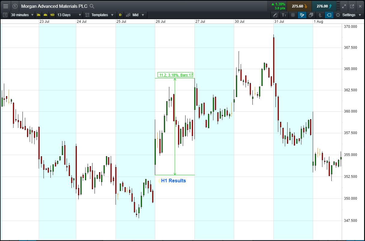 - The chart shows the price movement last time Morgan reported: H1 Results, 26 July.