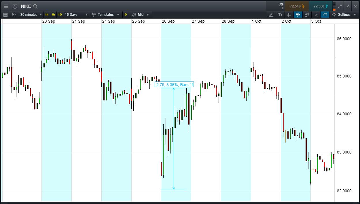 - The chart shows the price movement last time Next reported: Q3 Trading Update, 31 Oct.