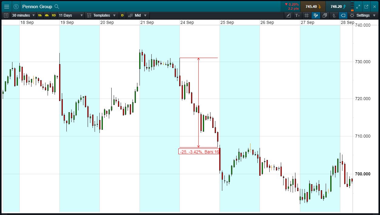 - The chart shows the price movement last time Pennon reported: Trading Statement, 24 Sept