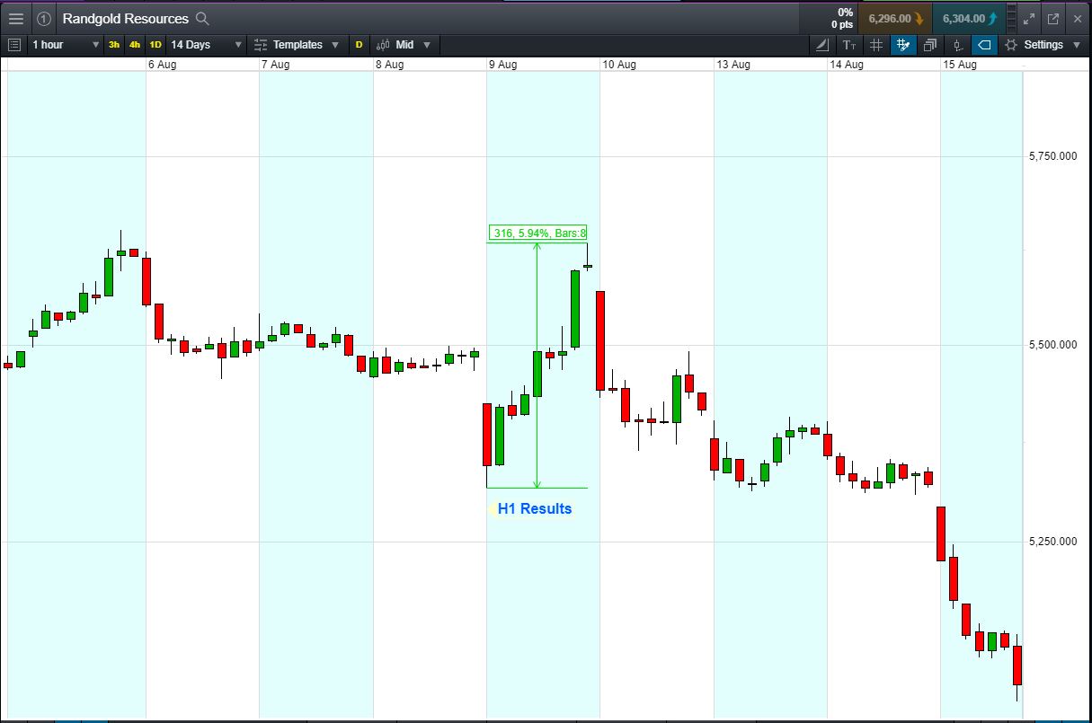 - The chart shows the price movement last time Randgold Resources reported: H1 Results, 9 August.