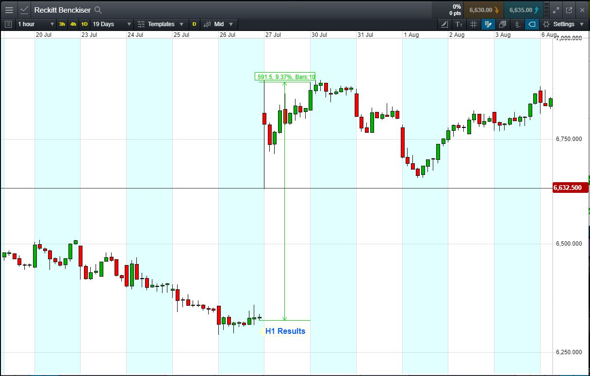- The chart shows the price movement last time Reckitt Benckiser reported: H1 Results, 27 Jul.