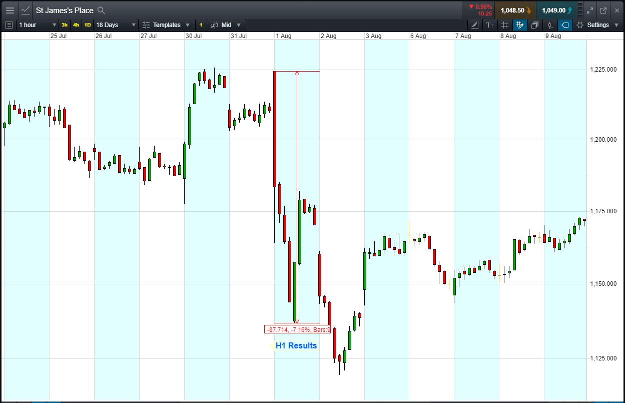 - The chart shows the price movement last time St James’s Place reported: half-year results, 1 Aug.