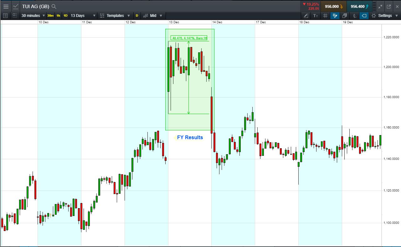 Conversely, let’s assume you open the position, and place a stop-loss 5% below the current price. TUI results miss, it falls 5% and hits your stop-loss. Your loss would be £500.